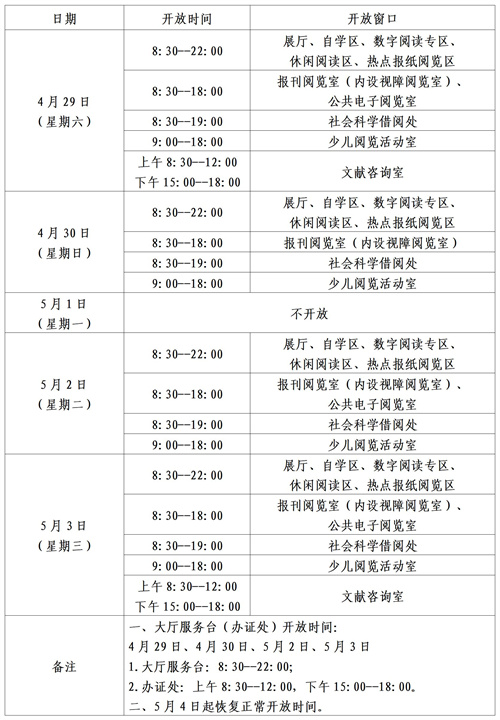 2023年“五一”劳动节期间开放时间表
