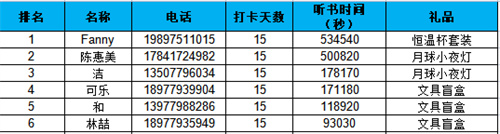 北海市图书馆举办的“阅享中秋,听见美好”主题线上听书打卡活动已经于2023年10月13日24点结束,恭喜以下读者成为获奖者: