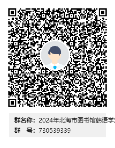 2024年“群山新万金韩语学堂(第三期)”将于2024年9月3日在北海市图书馆正式开班,请报名成功的学员按时参加。入选的学员请尽快加入我们的韩语学堂QQ群:730539339或点击手机QQ右上角“+”,扫码进群,了解最新动态信息,未尽事宜可拨打电话:0779-2022790。