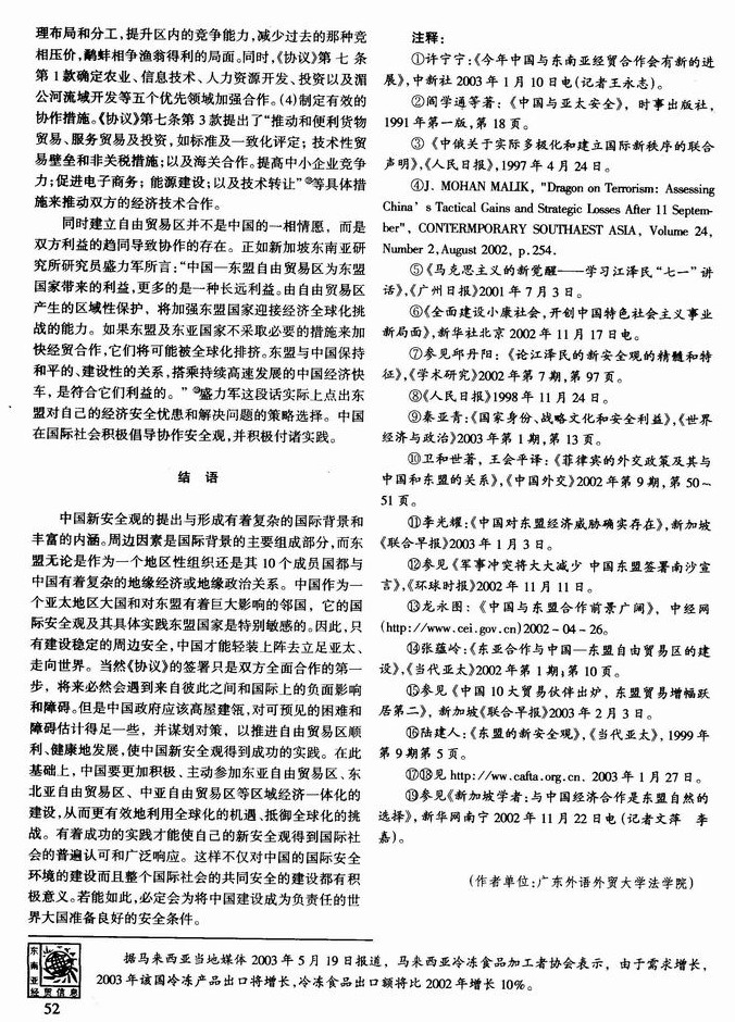 从与东盟建立自由贸易区透视中国的新安全观