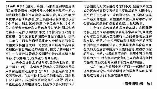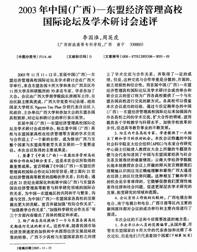 2003年中国(广西)-东盟经济管理高校国际论坛及学术研讨会述评