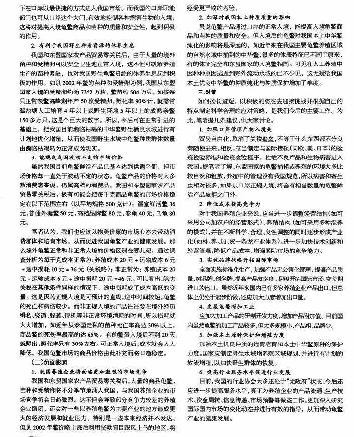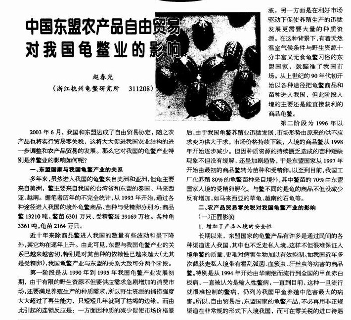 中国东盟补品自由贸易对我国龟鳖业的影响