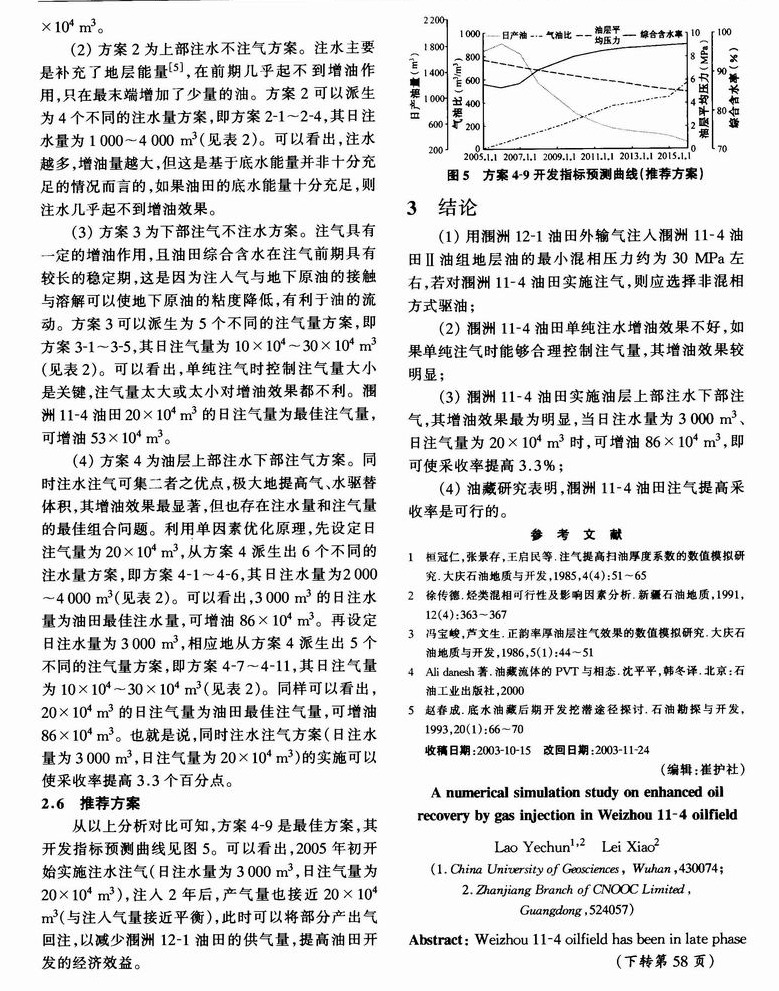 涠洲11—4油田注气提高采收率数值模拟研究
