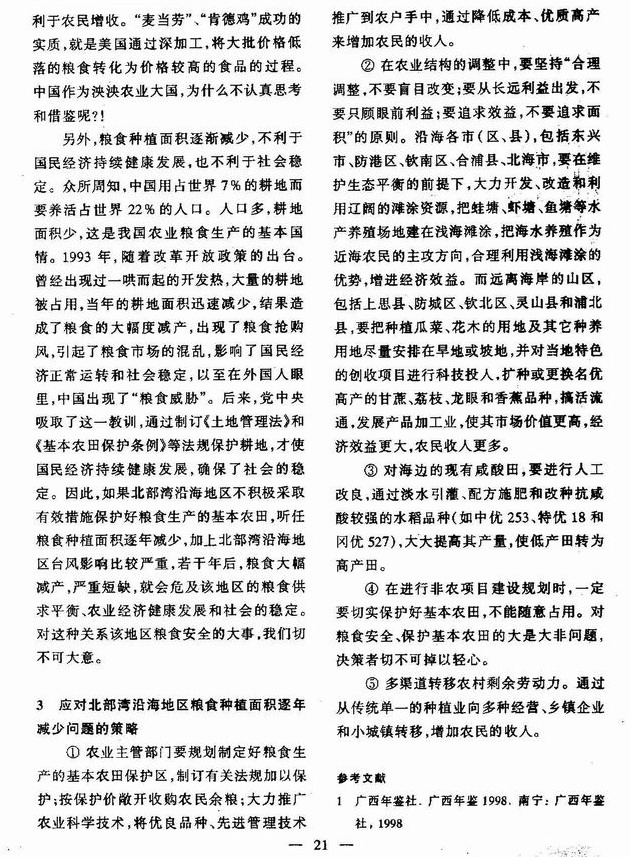 广西北部湾沿海地区粮食种植面积逐年减少的问题和对策