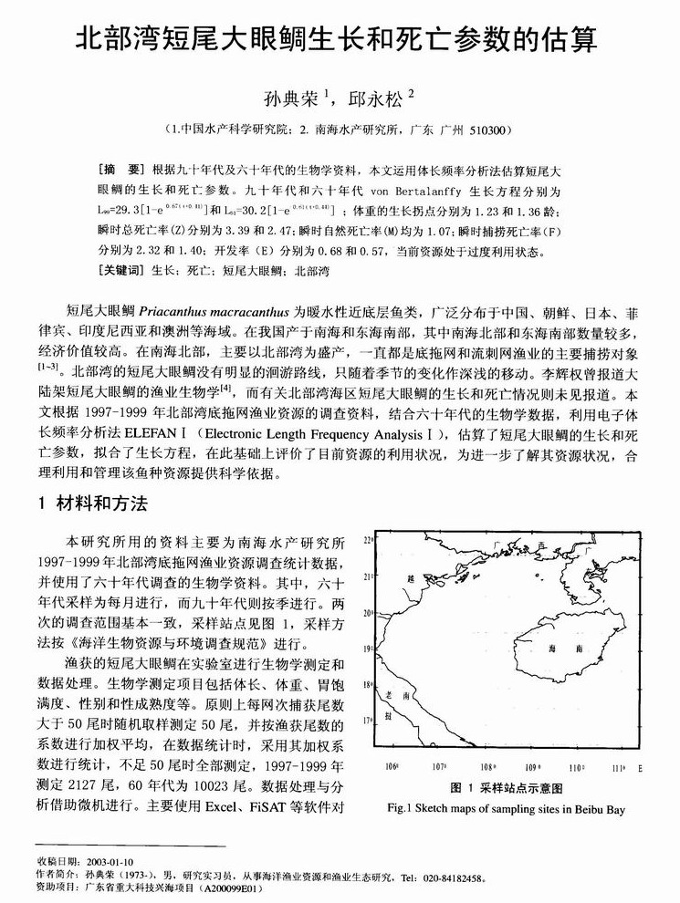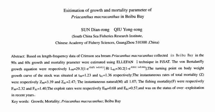 北部湾短尾大眼鲷生长和死亡参数的估算