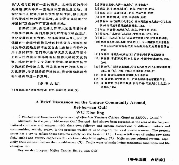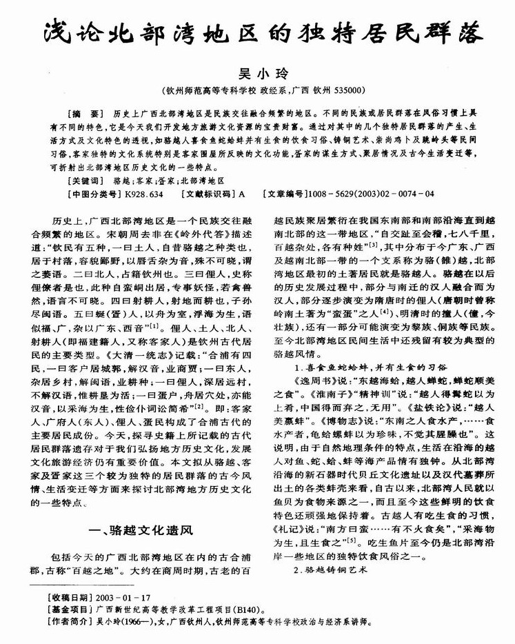 浅论北部湾地区的独特居民群落