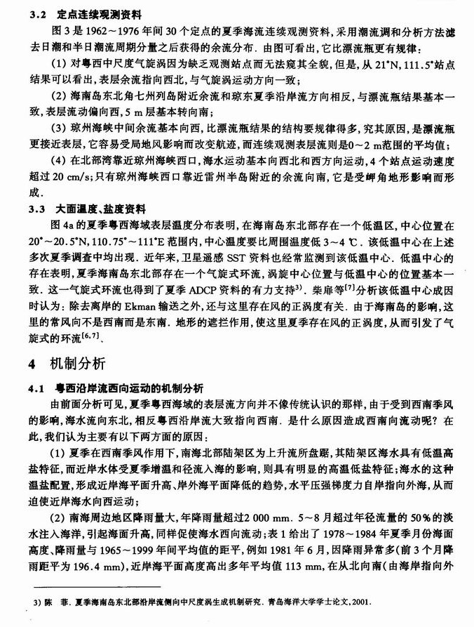 夏季粤西沿岸流特征及其产生机制