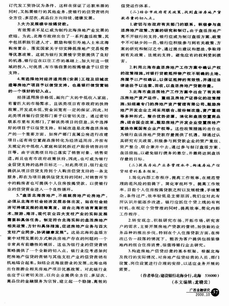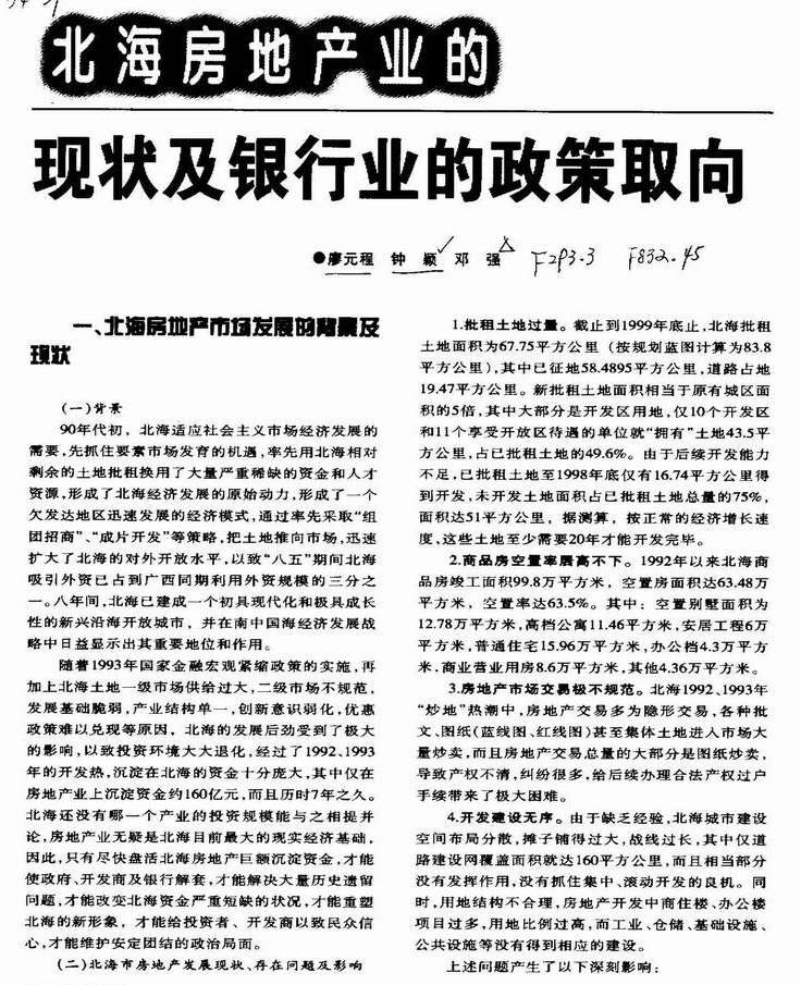 北海房地产业的现状及银行业的政策取向