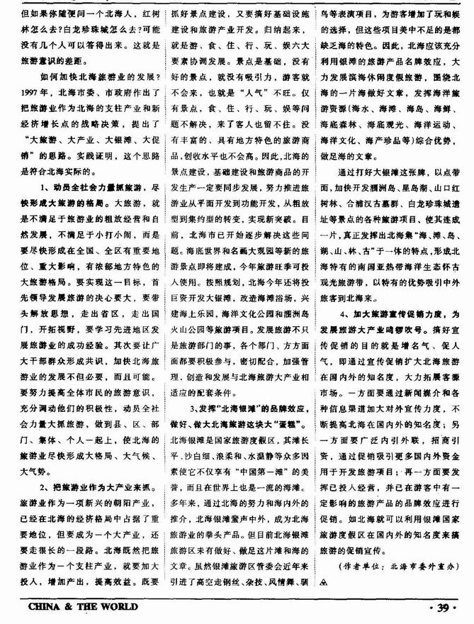 北海旅游业的现状与发展前景