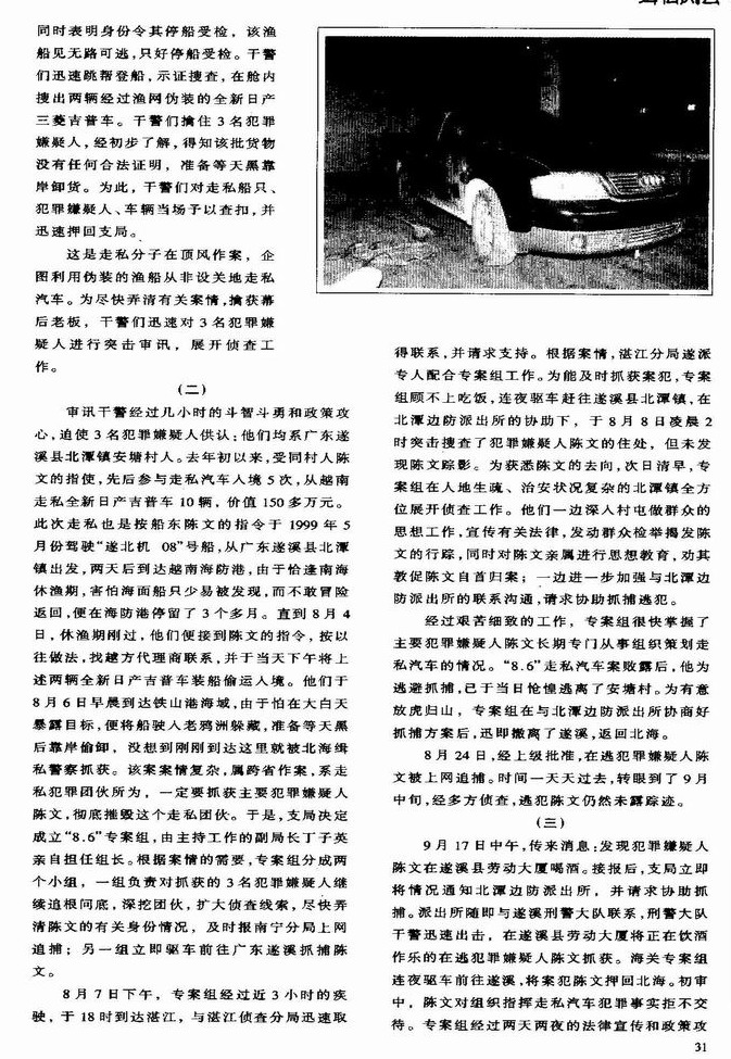 打“团伙”建奇功——北海侦查支局侦破“8·6”走私汽车案纪实