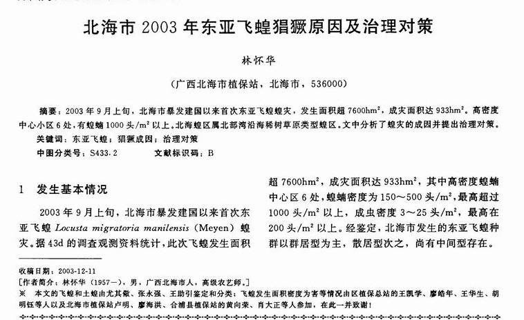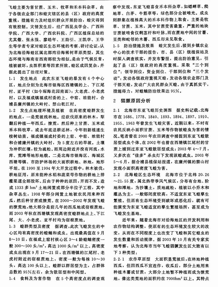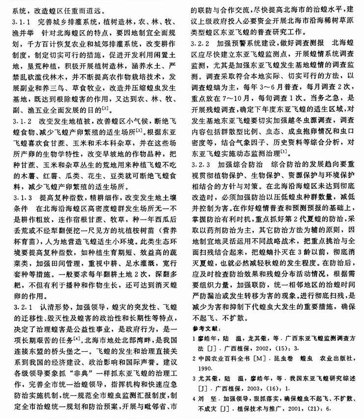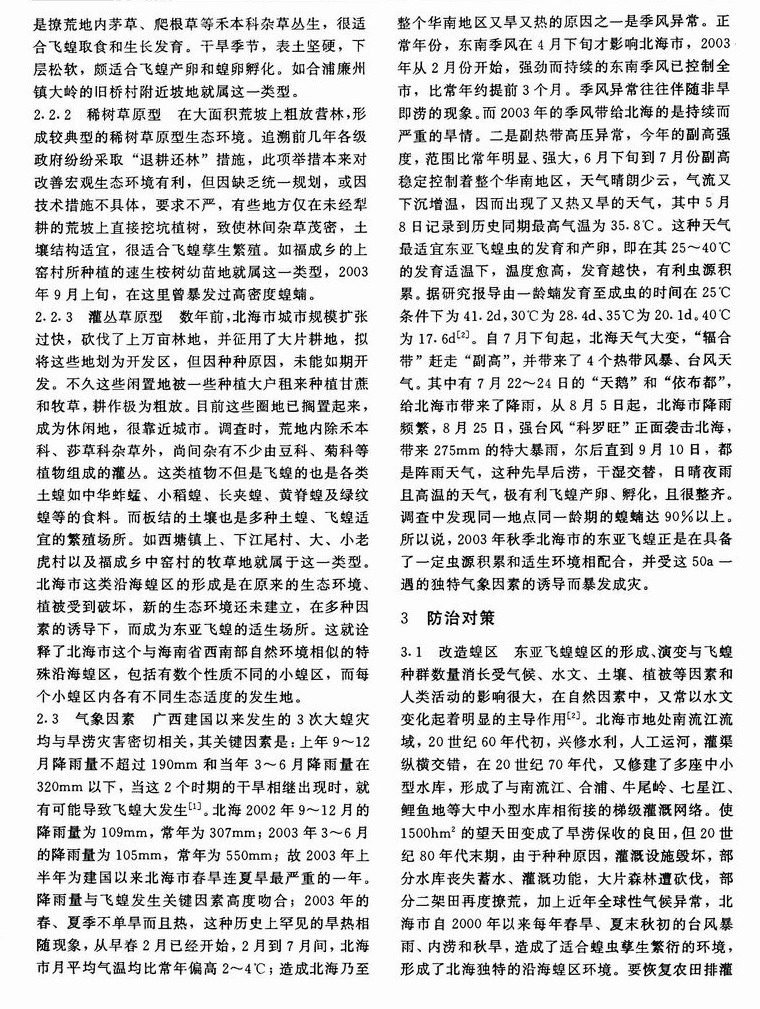 北海市2003年东亚飞蝗猖獗原因及治理对策