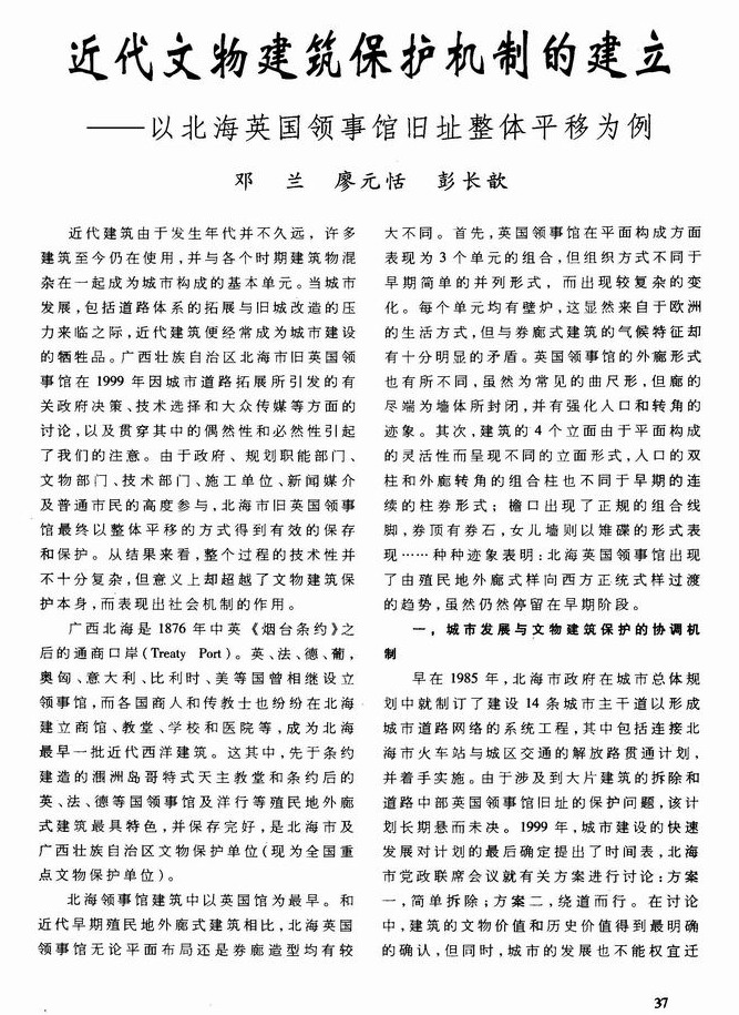 近代文物建筑保护机制的建立——以北海英国领事馆旧址整体平移为例