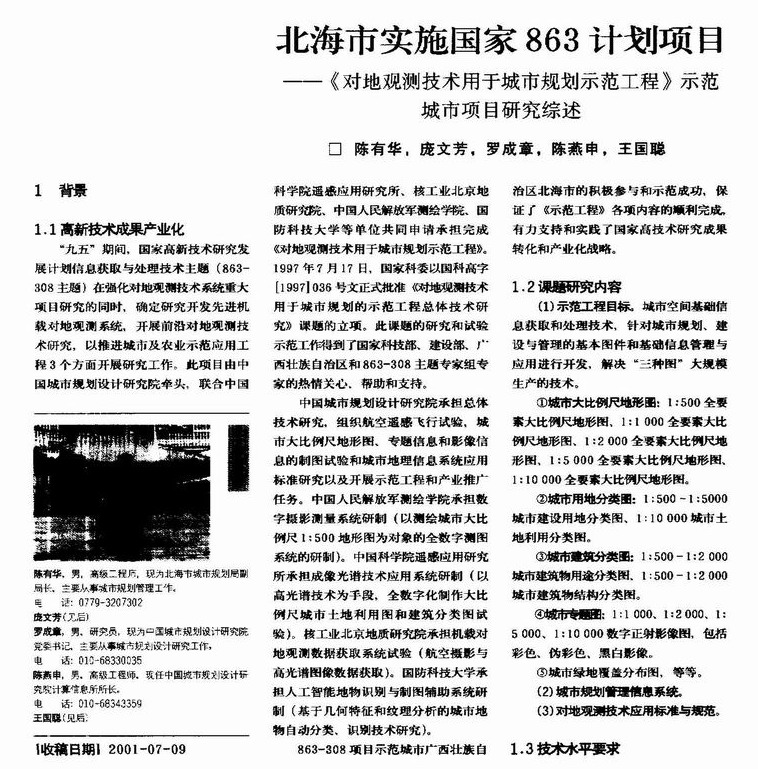 北海市实施国家863计划项目——《对地观测技术用于城市规划示范工程》示范城市项目研究综述