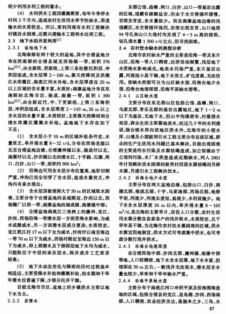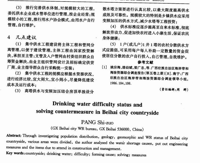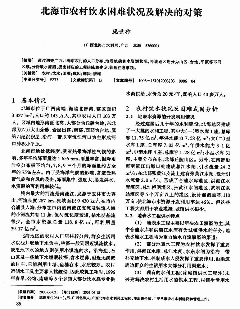 北海市农村饮水困难状况及解决的对策
