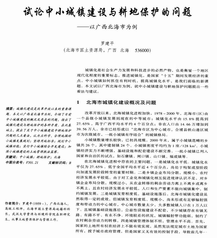 试论中小城镇建设与耕地保护的问题——以广西北海市为例