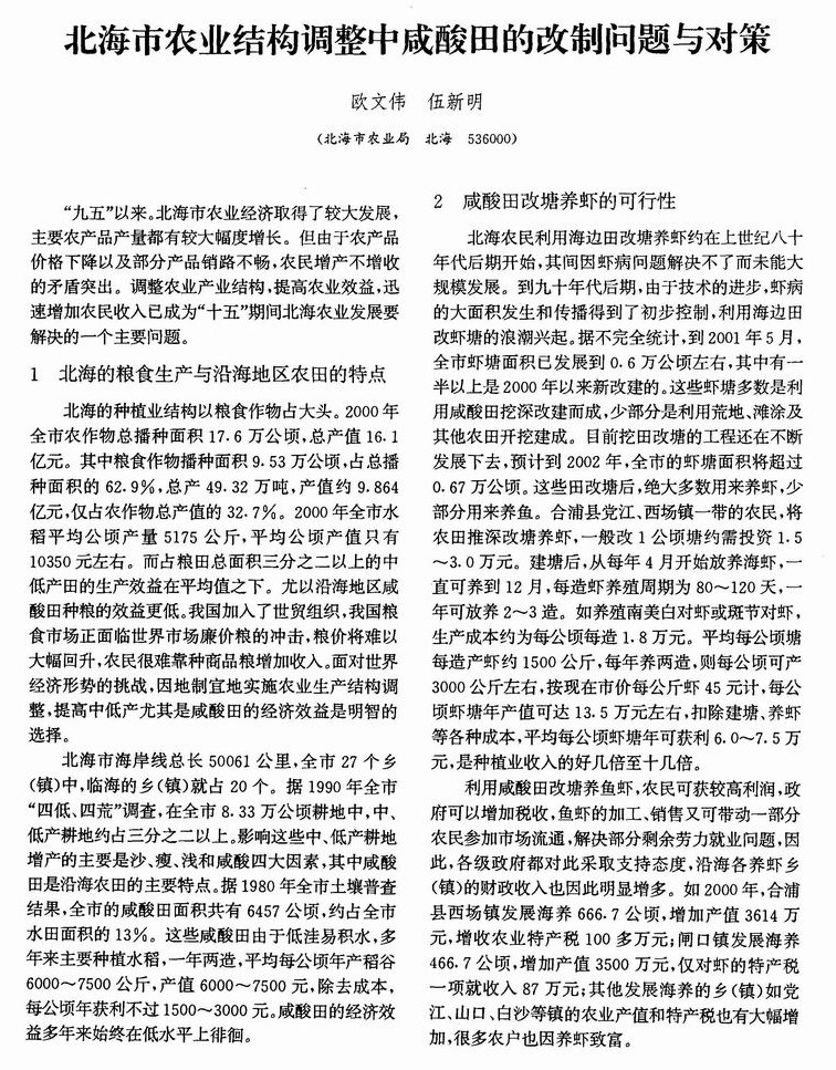 北海市农业结构调整中咸酸田的改制问题与对策