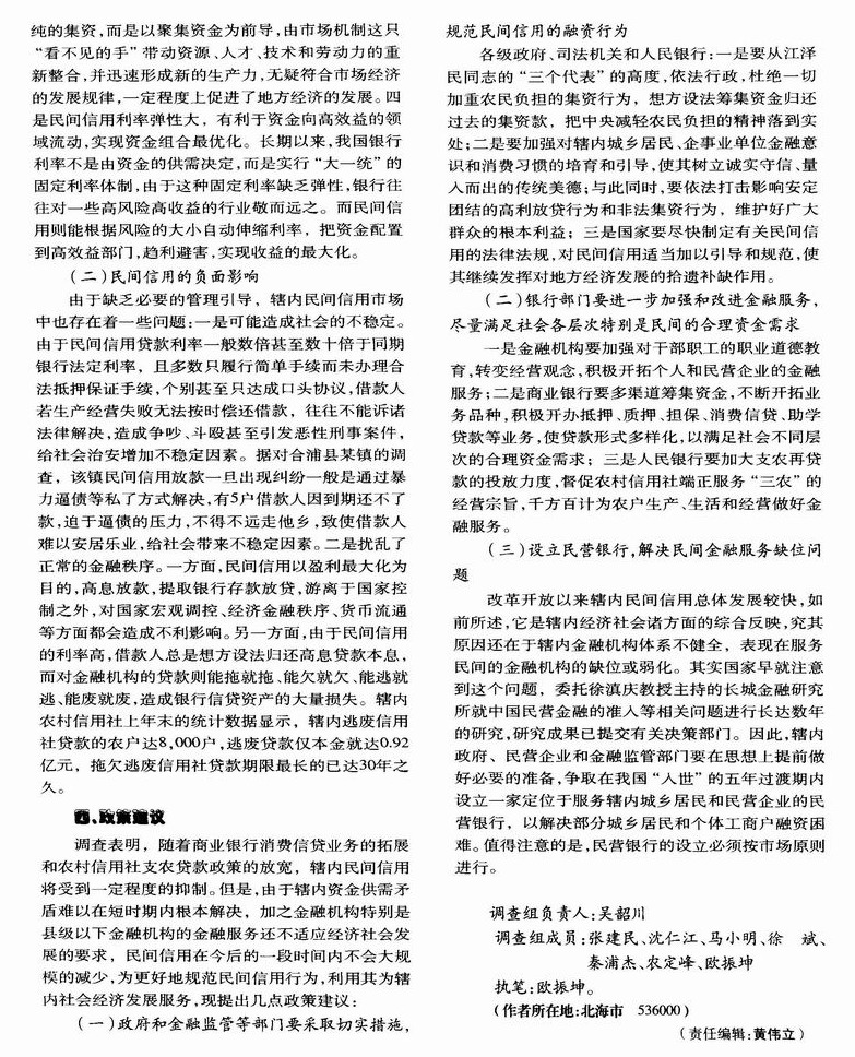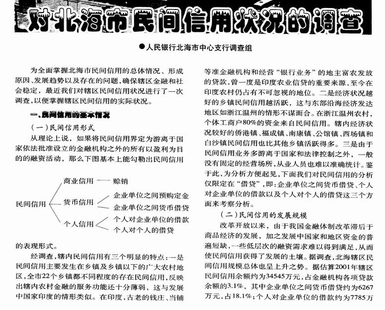 对北海市民间信用状况的调查