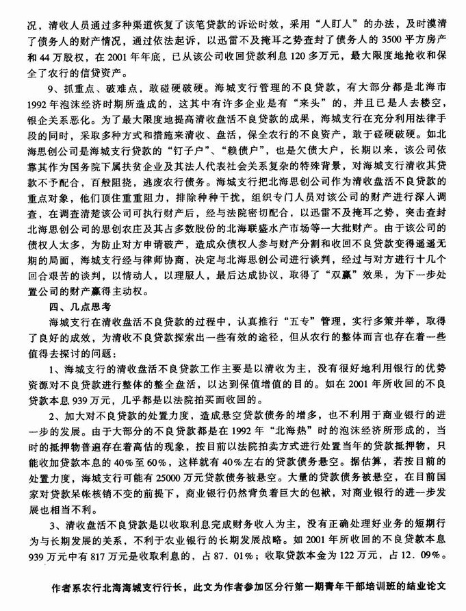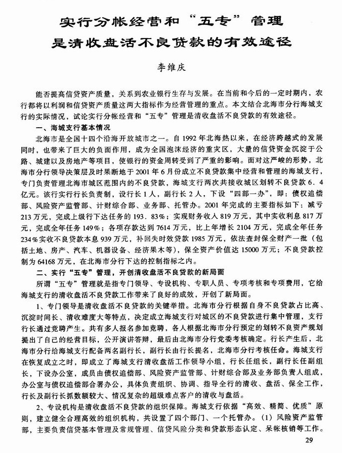 实行分帐经营和“五专”管理是清收盘活不良贷款的有效途径