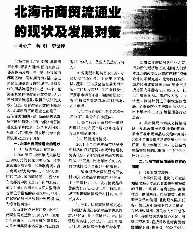 北海市商贸流通业的现状及发展对策