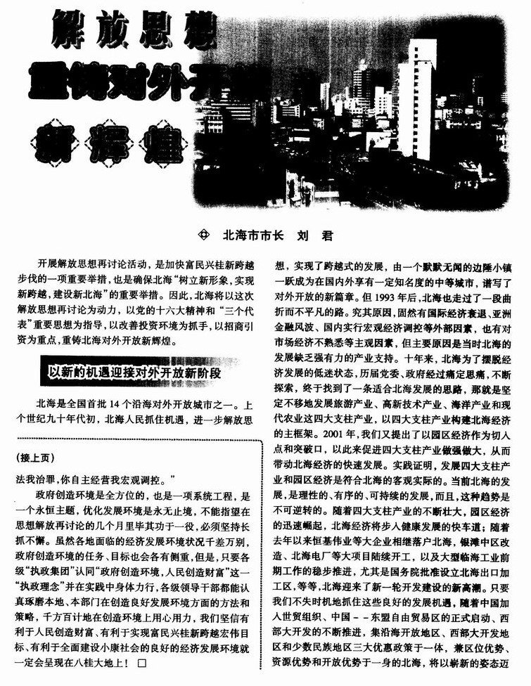 解放思想 重铸对外开放新辉煌