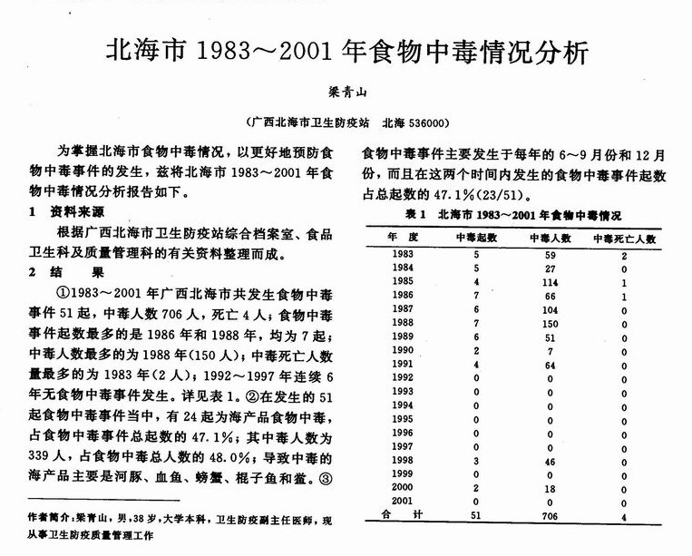 北海市1983—2001年食物中毒情况分析