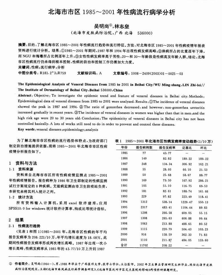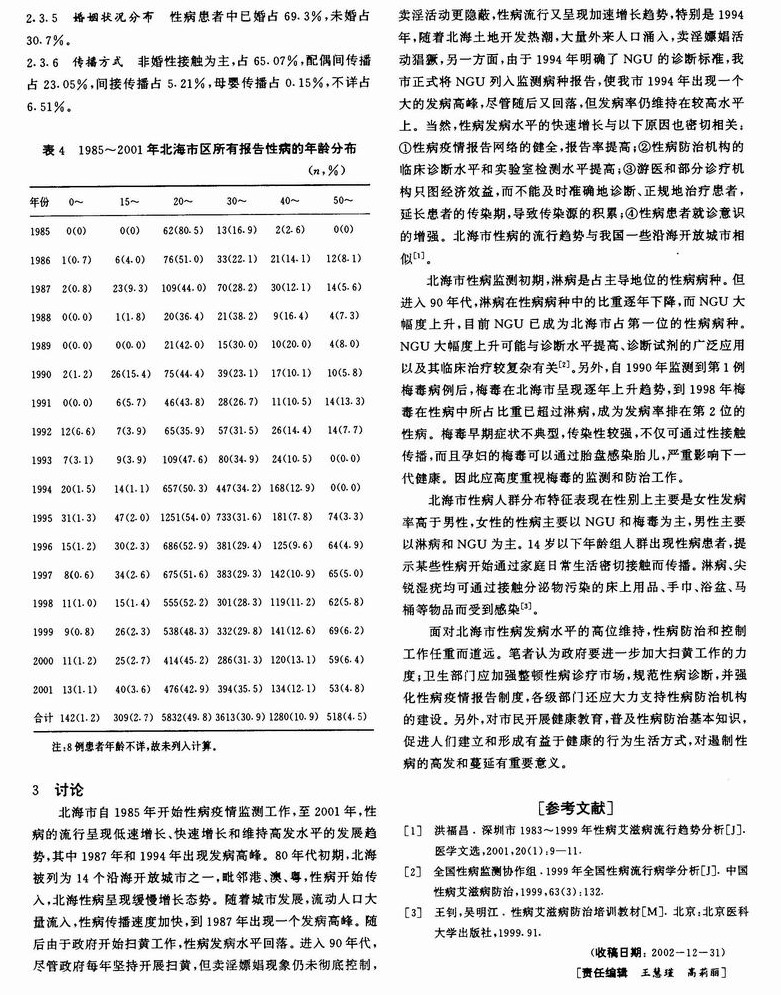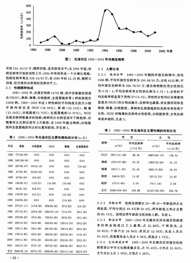 北海市市区1985—2001年性病流行病学分析