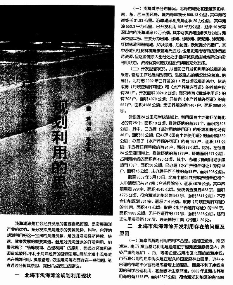 对北海市浅海滩涂规划利用的思考