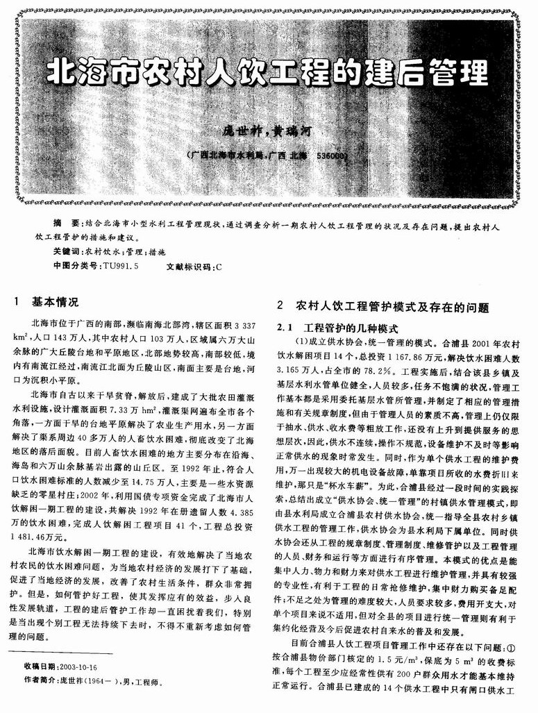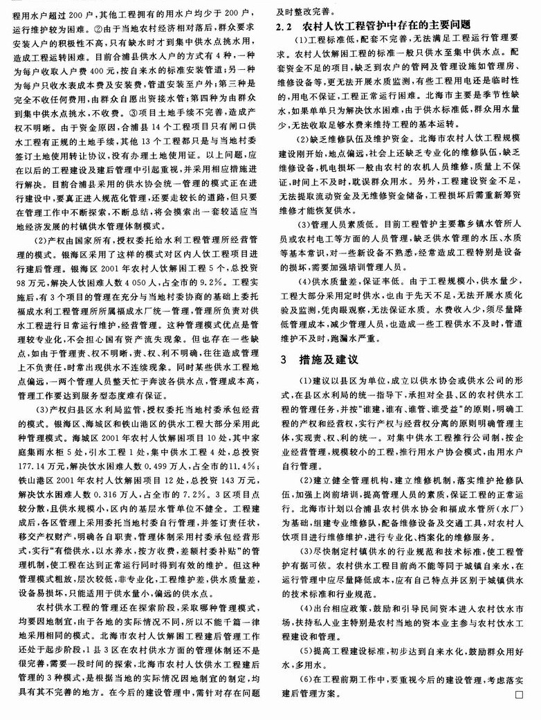 北海市农村人饮工程的建后管理
