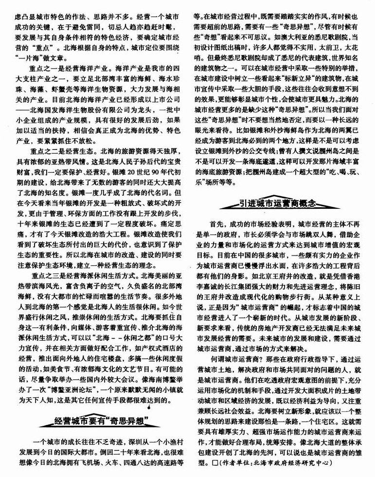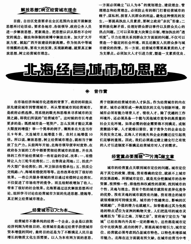北海经营城市的思路