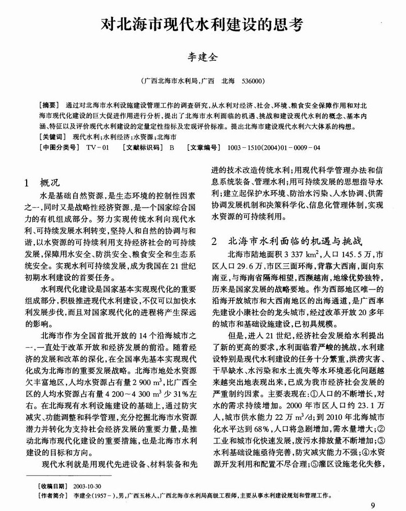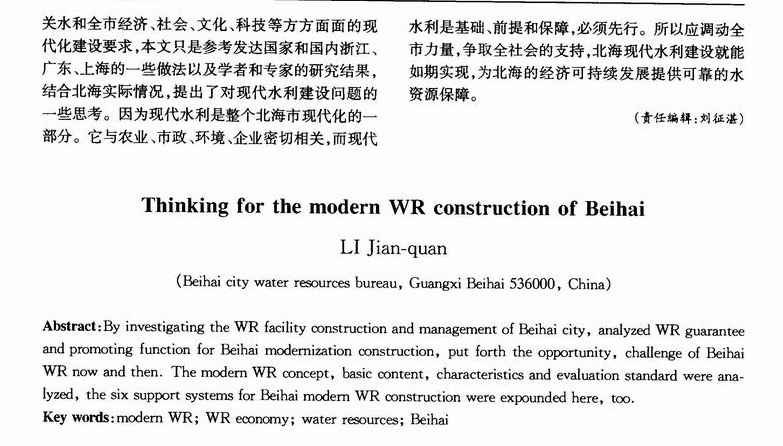 对北海市现代水利建设的思考