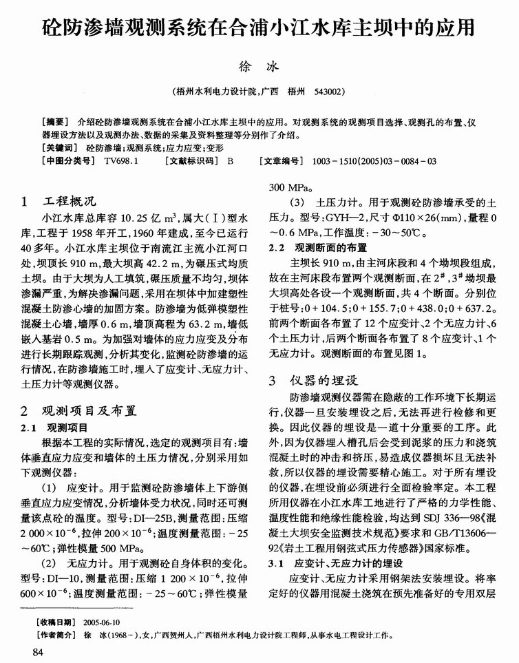 砼防渗墙观测系统在合浦小江水库主坝中的应用
