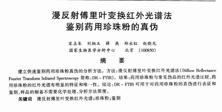 漫反射傅里叶变换红外光谱法鉴别药用珍珠粉的真伪
