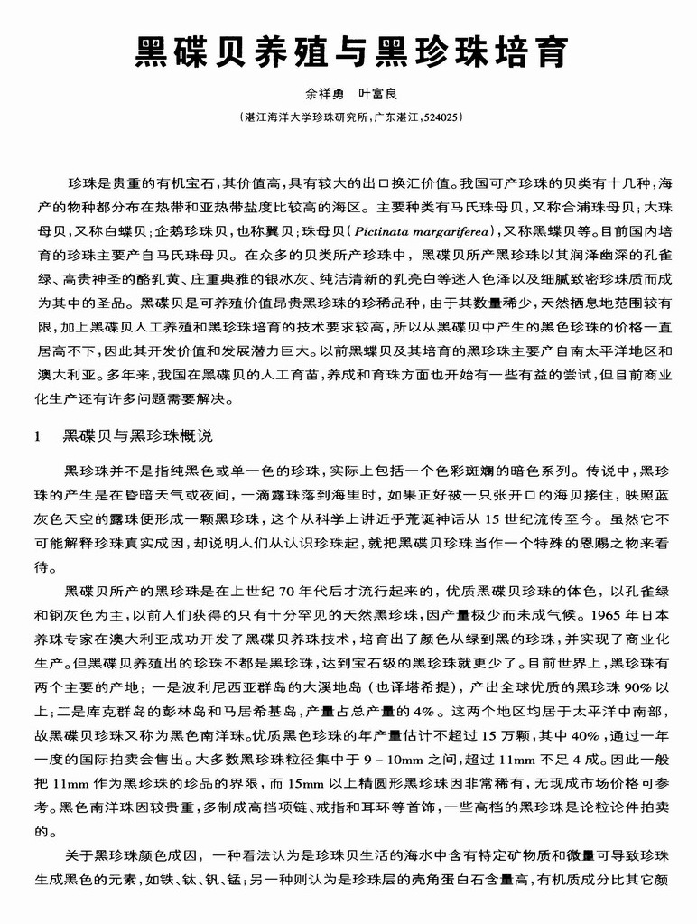 黑碟贝养殖与黑珍珠培育