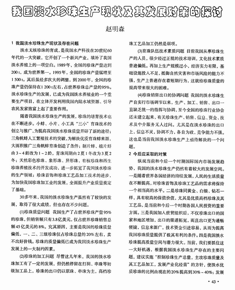 我国淡水珍珠生产现状及其发展对策的探讨