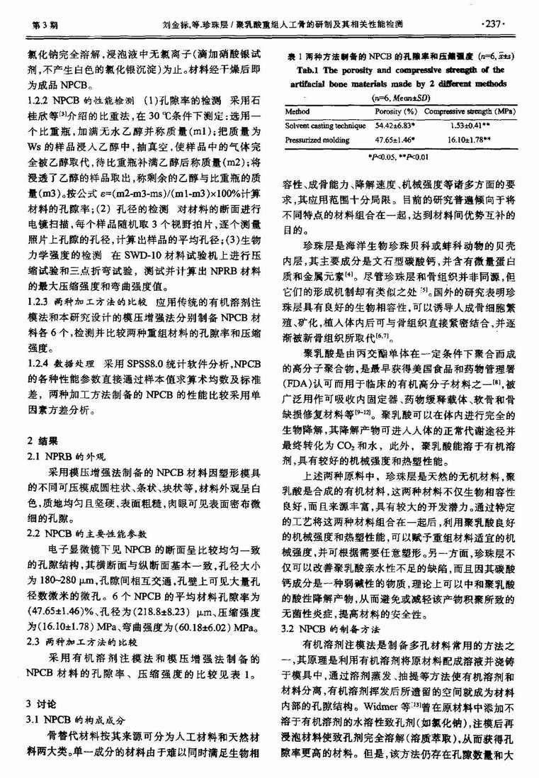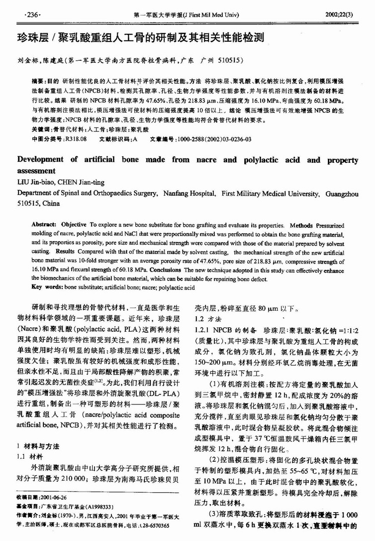 珍珠层/聚乳酸重组人工骨的研制及其相关性能检测