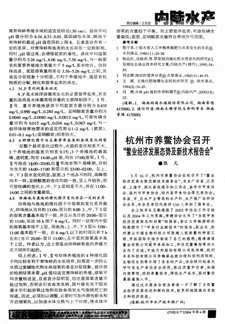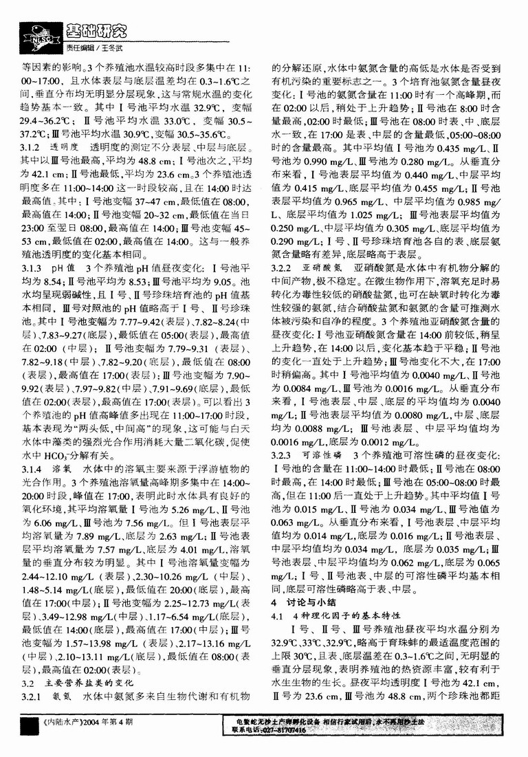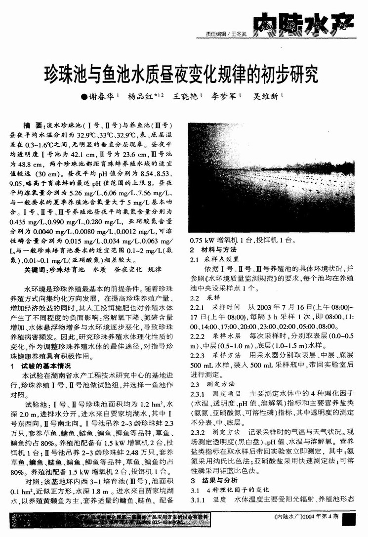 珍珠池与鱼池水质昼夜变化规律的初步研究