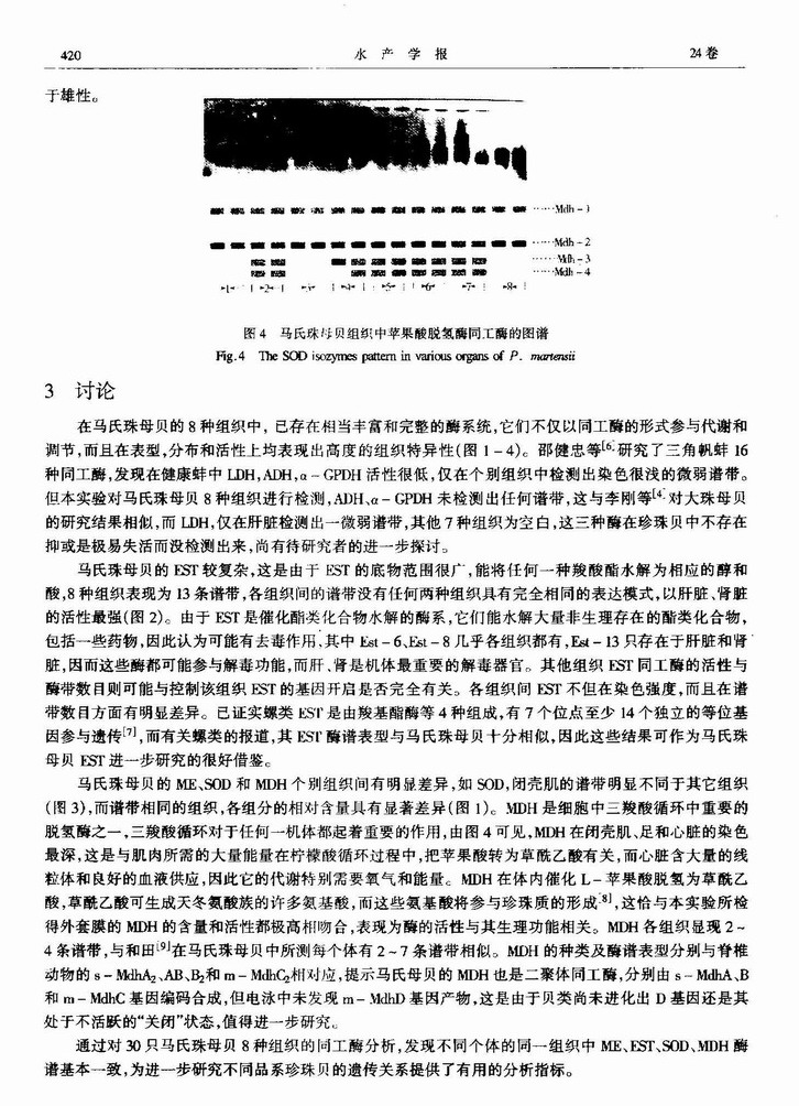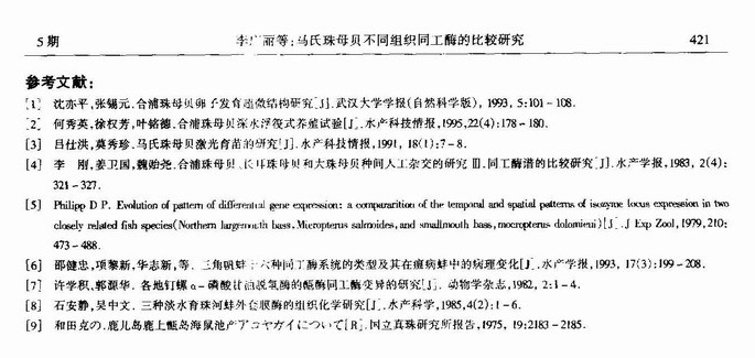 马氏珠母贝不同组织同工酶的比较