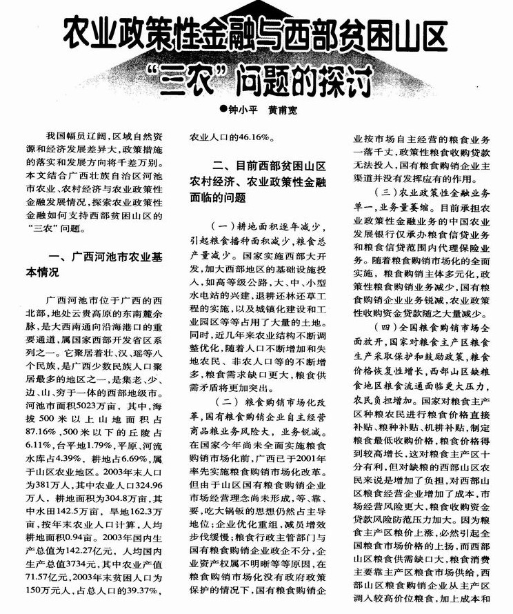 农业政策性金融与西部贫困山区“三农”问题的探讨