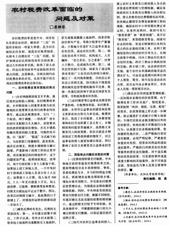 农村税费改革面临的问题及对策