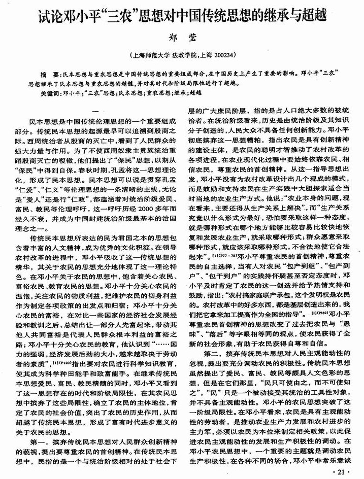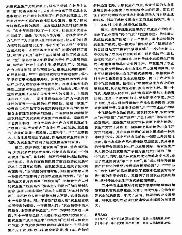 试论邓小平“三农”思想对中国传统思想的继承与超越