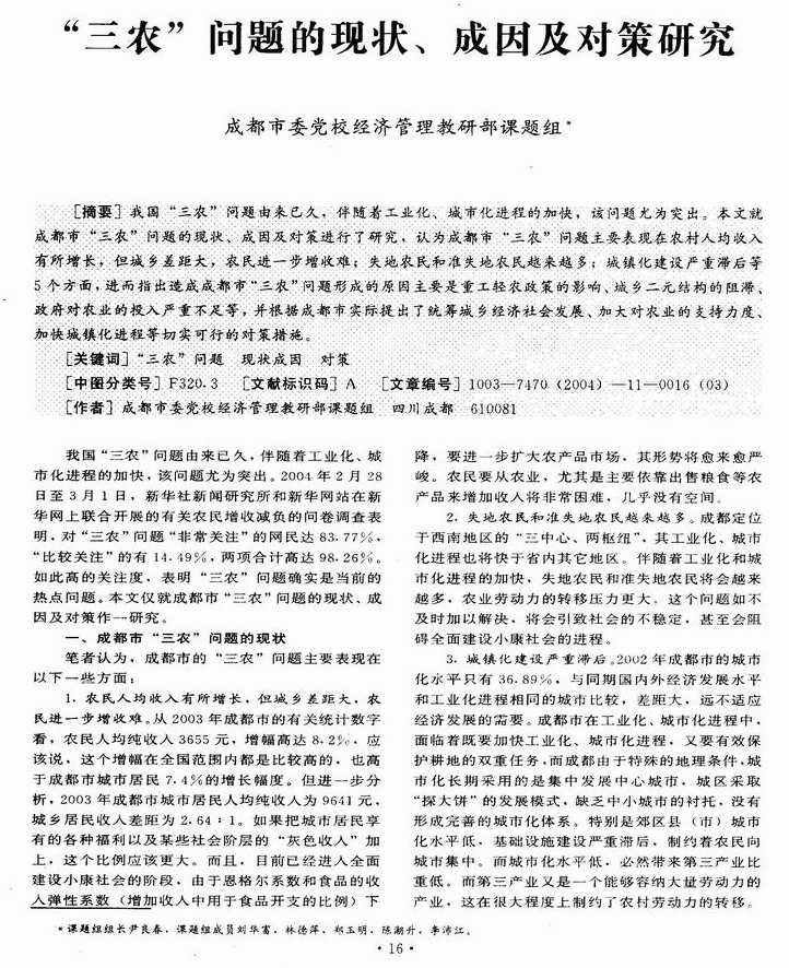 “三农”问题的现状、成因及对策研究