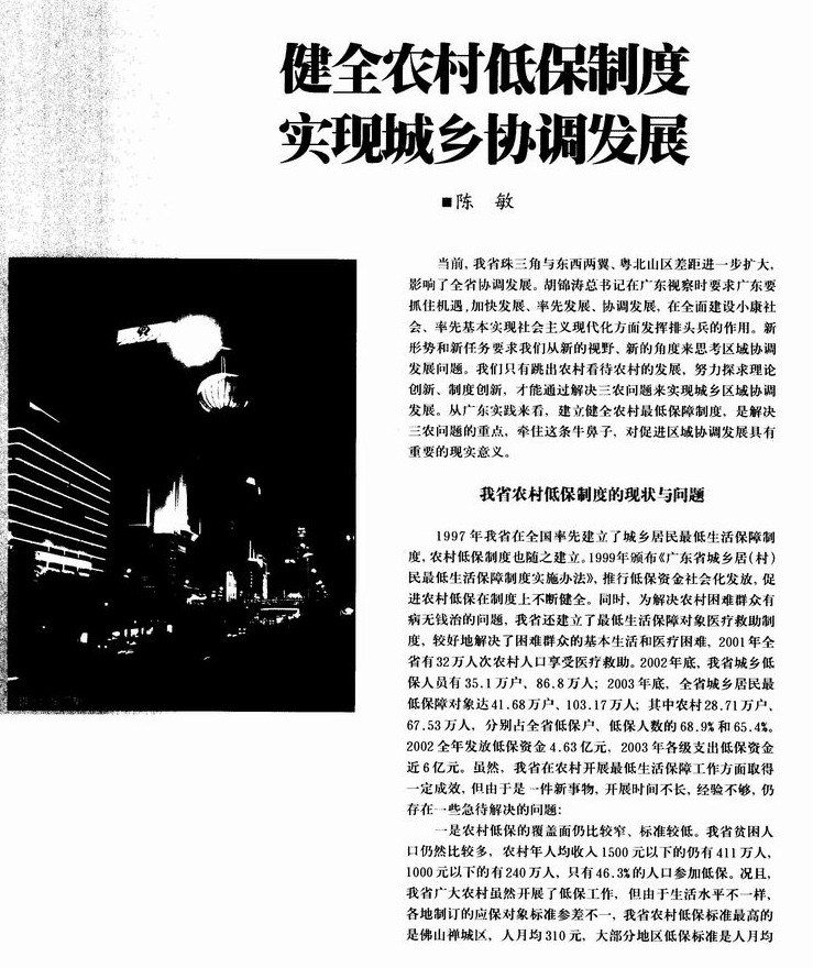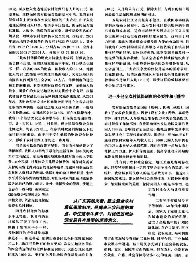 健全农村低保制度 实现城乡协调发展