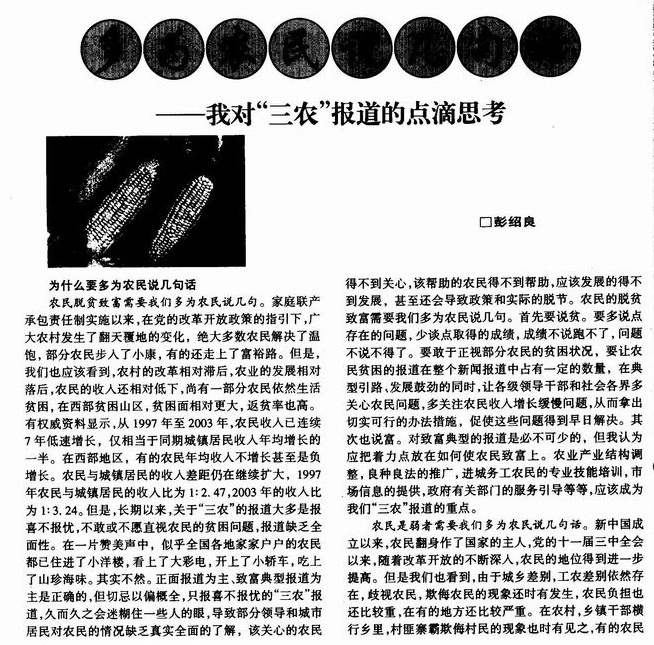 多为农民说几句话——我对“三农”报道的点滴思考
