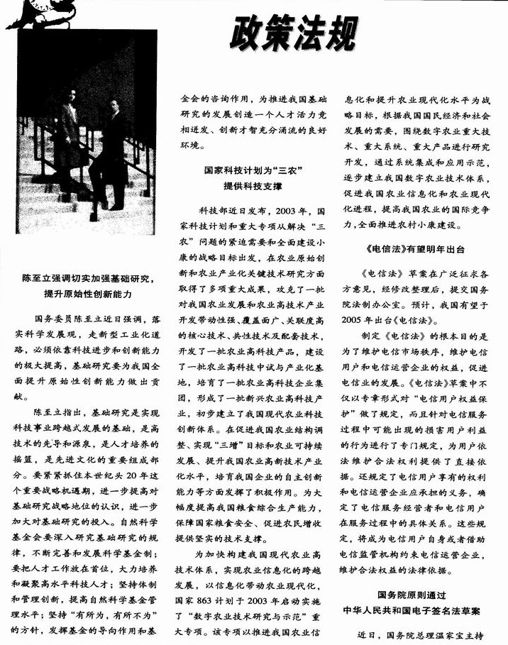国家科技计划为“三农”提供科技支撑