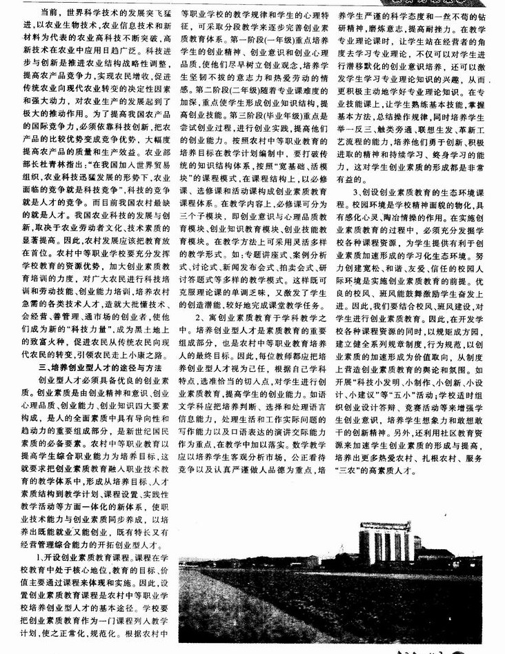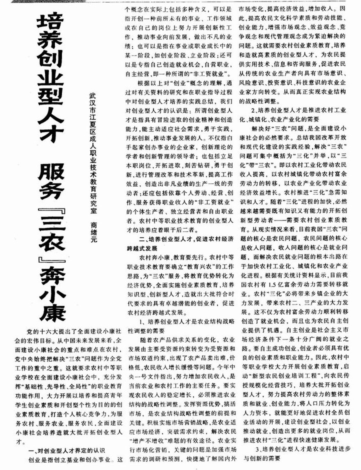 培养创业型人才 服务“三农”奔小康