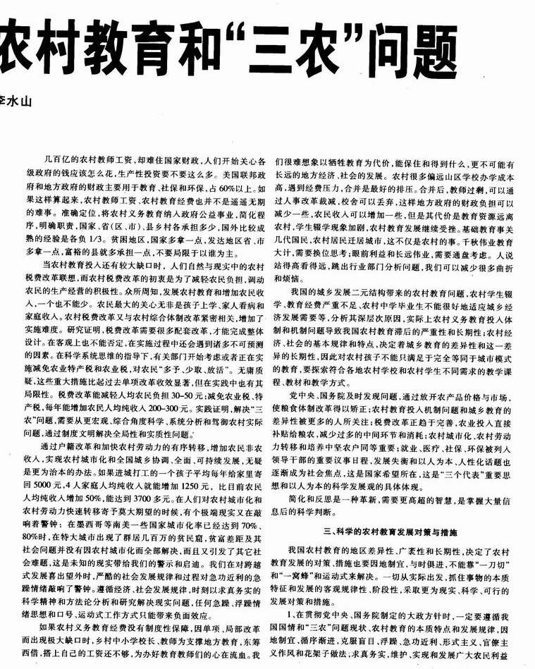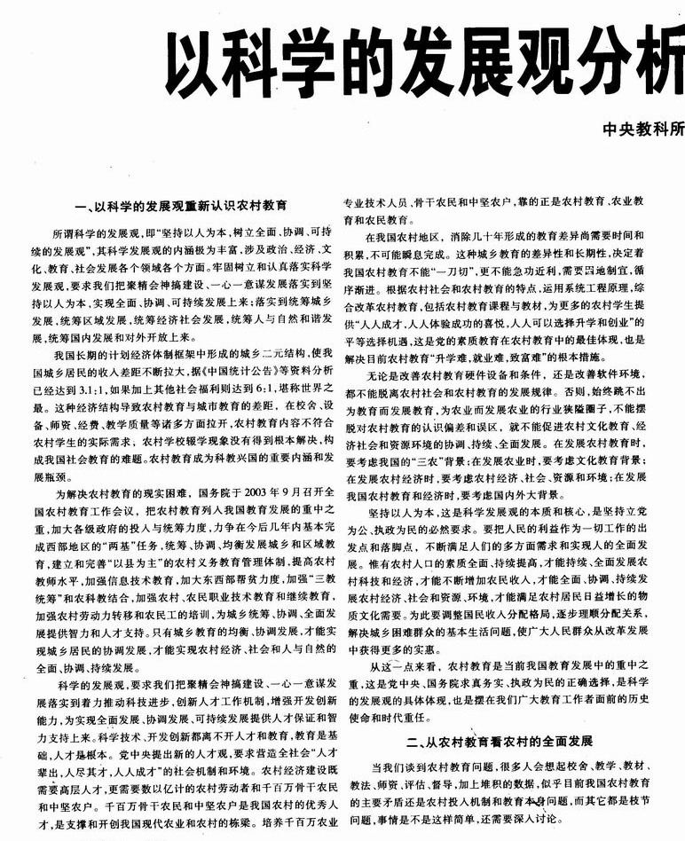 以科学的发展观分析农村教育和“三农”问题