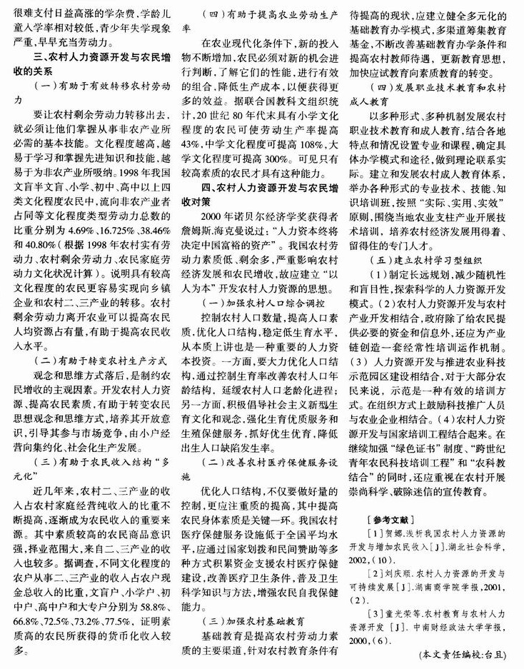开发农村人力资源 促进农民收入增加