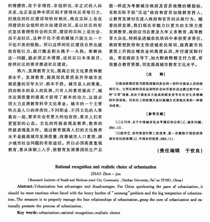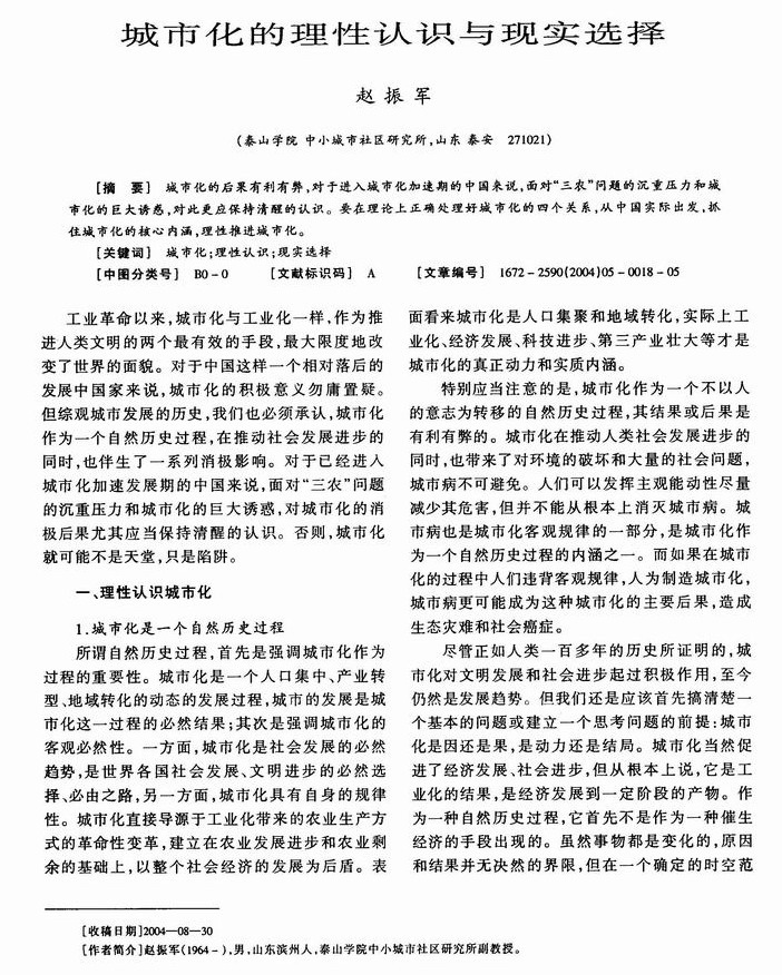 城市化的理性认识与现实选择