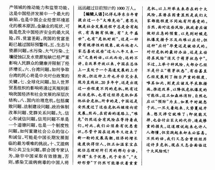 中国未来五年将要面对的十大风险