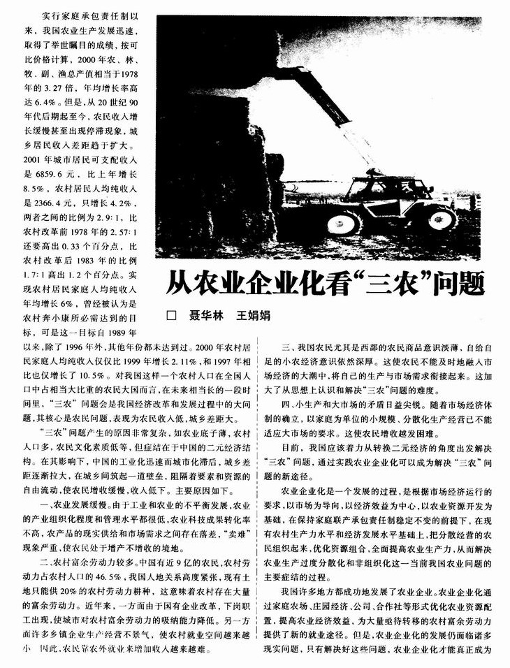 从农业企业化看“三农”问题
